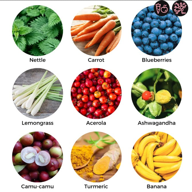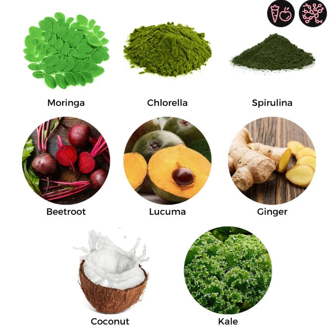 Curcuma contributes to normal digestion*, Spirulina helps maintain weight* and Ginger supports energy levels...all of this is packed along with other superfoods in one daily superfood shake!