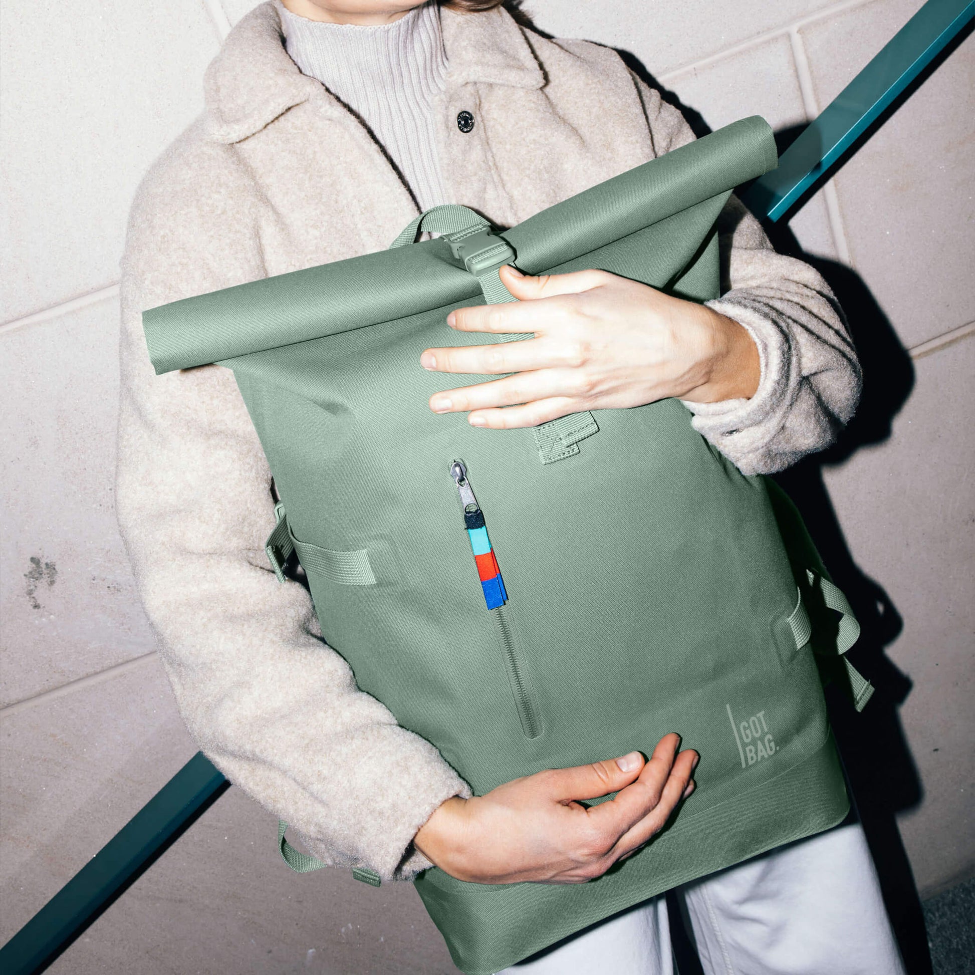 Introducing our sleek Roll Top Backpack, crafted from durable ocean plastic and designed to be the perfect accessory for city and travel use.